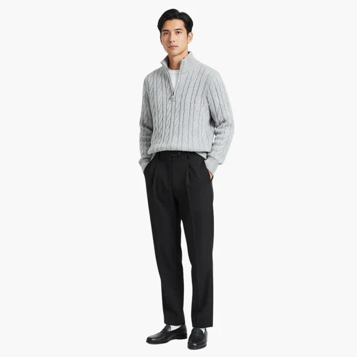 TAEBAEK Zipped Cable Sweater: Meticulously crafted with premium materials, this sweater offers unmatched warmth and sophistication, making it a versatile staple for any wardrobe.